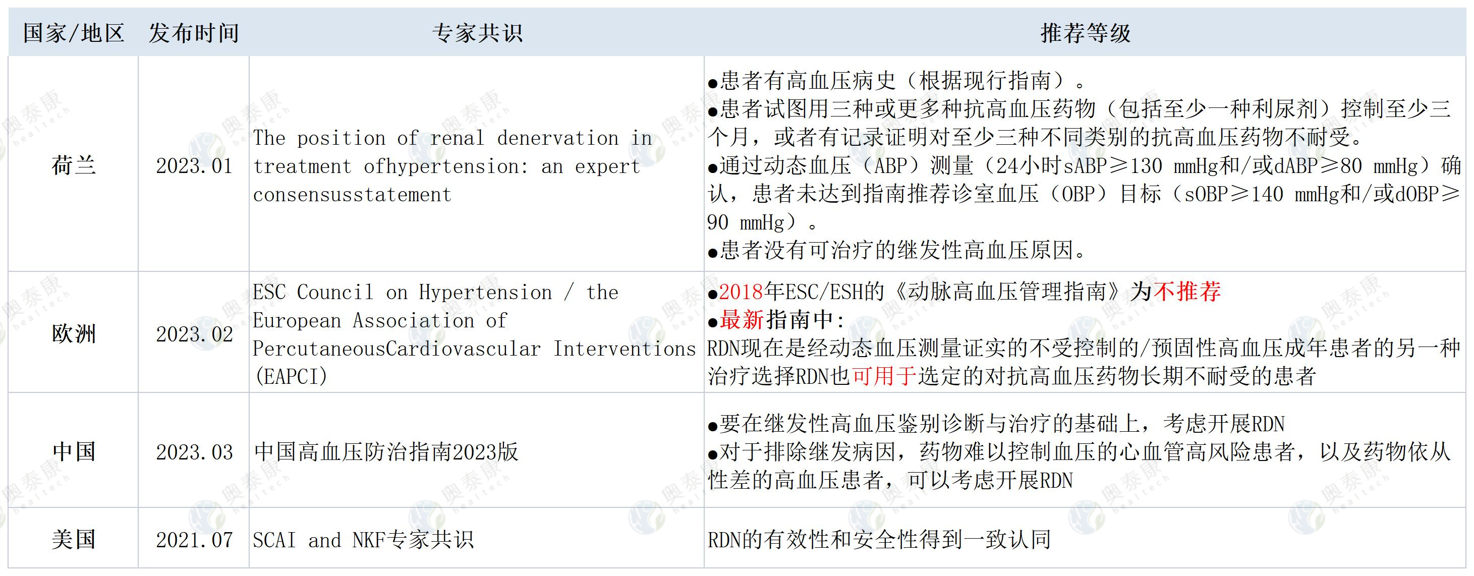 RDN的臨床應(yīng)用在10余年的發(fā)展過(guò)程中經(jīng)歷一波三折,早期美敦力Symplicity 系列產(chǎn)品的HTN-1、HTN-2、HTN-3臨床試驗(yàn)結(jié)果的不一致性,一度使行業(yè)動(dòng)搖(Symplicity HTN-3研究未能表現(xiàn)出理想的降壓效果),很多廠家陸續(xù)暫停研發(fā)和試驗(yàn),但隨后大量臨床研究通過(guò)嚴(yán)謹(jǐn)?shù)幕€評(píng)估、手術(shù)指征把控、強(qiáng)調(diào)假手術(shù)對(duì)照、改進(jìn)多電極消融導(dǎo)管,增強(qiáng)隨訪依從性等方面加強(qiáng)改進(jìn),得到令人欣慰的結(jié)果,使近年來(lái)RDN技術(shù)再次獲得關(guān)注,美國(guó)、歐洲、中國(guó)等均發(fā)布專家共識(shí),肯定了RDN降低血壓的有效性和安全性。