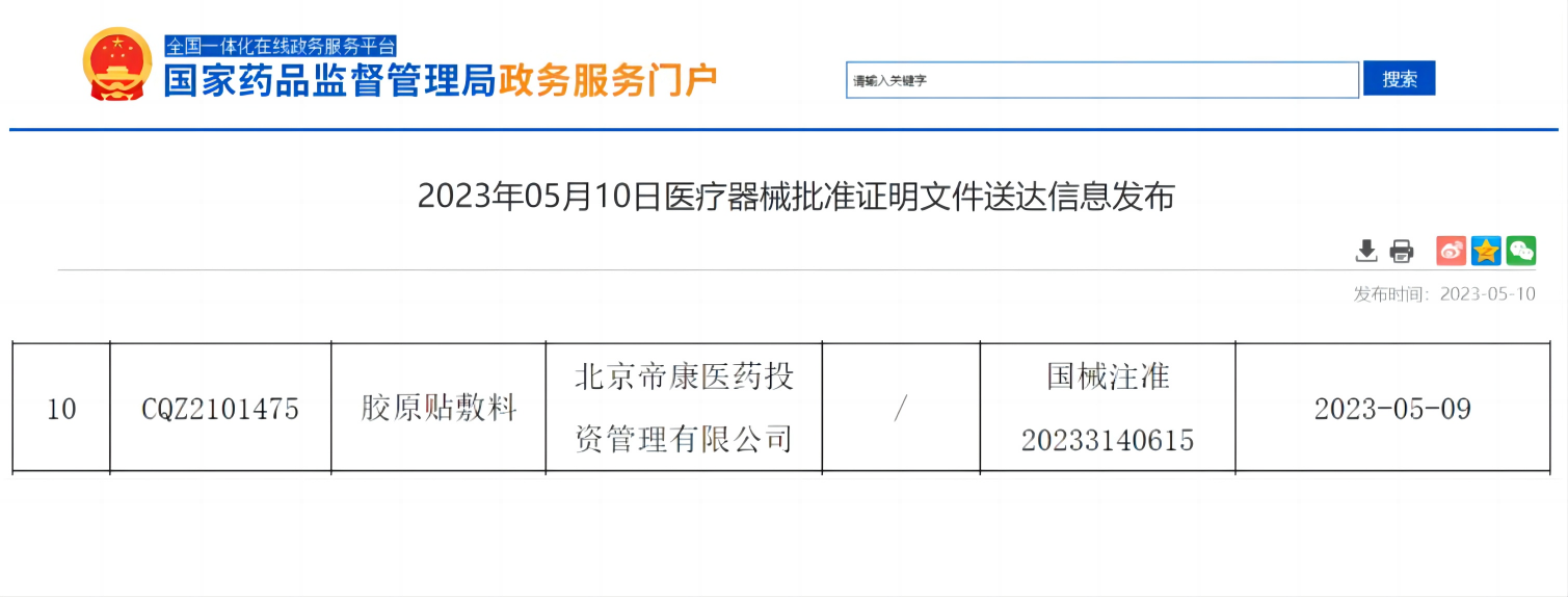 MA成果發(fā)布_2023年5月9日,奧泰康北京CDMO中心取得「首張」國(guó)家藥監(jiān)局批準(zhǔn)的三類醫(yī)療器械注冊(cè)證2023年5月9日,奧泰康北京CDMO中心取得「首張」國(guó)家藥監(jiān)局批準(zhǔn)的三類醫(yī)療器械注冊(cè)證(國(guó)械注準(zhǔn)20233140615),系全國(guó)首個(gè)以細(xì)胞外基質(zhì)來源的膠原蛋白為原料制備的三類膠原貼敷料。此項(xiàng)目是北京CDMO中心基于“十三五”國(guó)家重點(diǎn)研發(fā)計(jì)劃項(xiàng)目,在MAH制度下,與湖北恒安芙林藥業(yè)股份有限公司戰(zhàn)略合作完成涵蓋市場(chǎng)準(zhǔn)入全流程業(yè)務(wù)的醫(yī)美類項(xiàng)目,也是器械CRO/CDMO行業(yè)受托研發(fā)誕生的全國(guó)首個(gè)三類醫(yī)療器械注冊(cè)證,具有里程碑意義。