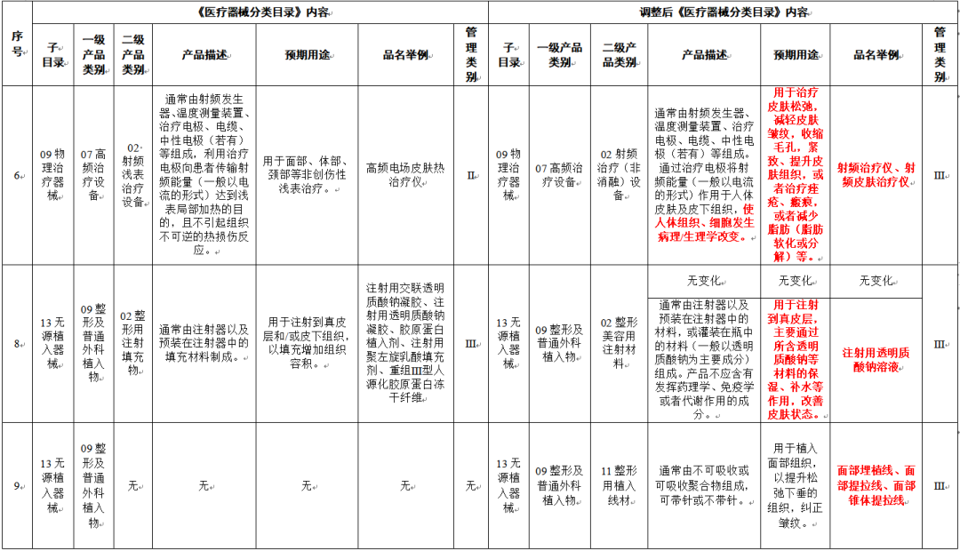 醫(yī)美注射類產(chǎn)品是國家近年來重點(diǎn)監(jiān)管領(lǐng)域,隨著水光針產(chǎn)品的火熱和市場的良莠不齊,產(chǎn)品濫用、超適應(yīng)癥范圍使用情況增多,國家藥監(jiān)局標(biāo)管中心出臺政策規(guī)范了對于水光針產(chǎn)品的監(jiān)管標(biāo)準(zhǔn)。2022年3月30日,國家藥監(jiān)局發(fā)布實(shí)施《關(guān)于調(diào)整<醫(yī)療器械分類目錄>部分內(nèi)容的公告(2022年第30號)》,對部分醫(yī)美產(chǎn)品監(jiān)管類別作出調(diào)整,其中明確注射用透明質(zhì)酸鈉溶液按照III類器械進(jìn)行監(jiān)管。政策的落地,促使生產(chǎn)廠家積極申報III類醫(yī)療器械注冊證,具有III類醫(yī)療器械注冊證的水光產(chǎn)品有望加速上市。