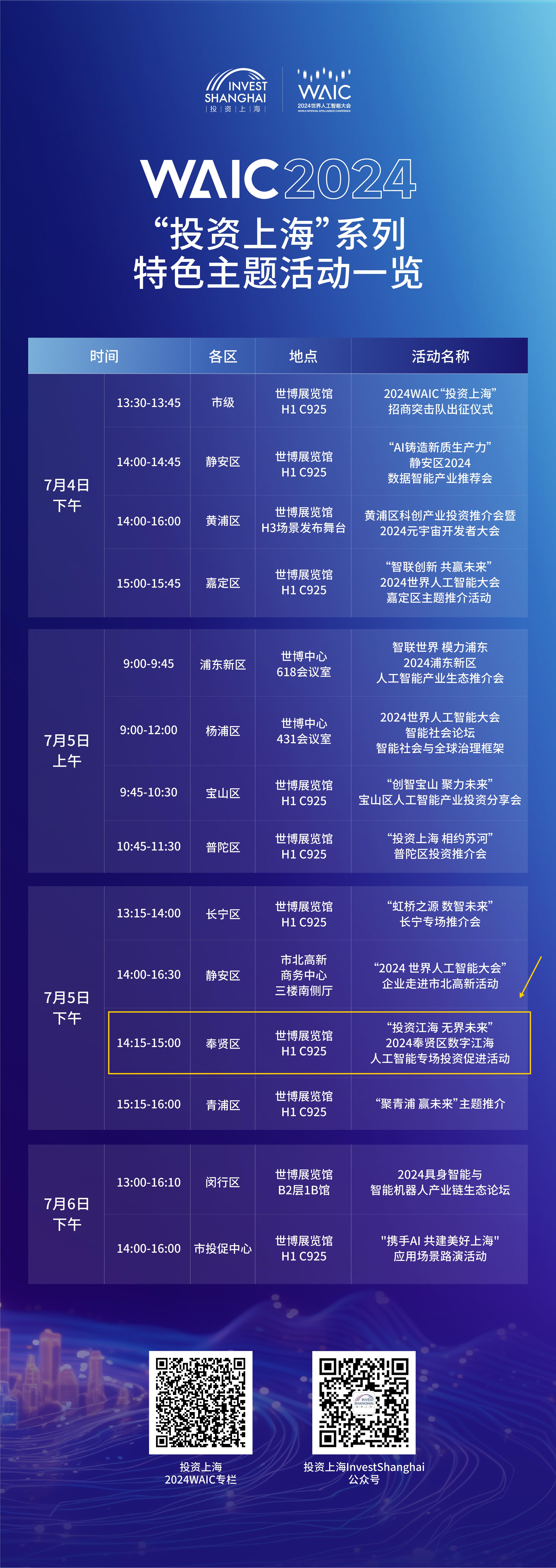 WAIC 2024是人工智能行業(yè)的世界盛會(huì),為把握大會(huì)激發(fā)的全新投資機(jī)遇,推動(dòng)展商變投資商,市投促中心聯(lián)合各區(qū)投促部門(mén),將在大會(huì)期間舉辦一系列精彩紛呈的特色主題活動(dòng),向世界分享上海AI產(chǎn)業(yè)投資機(jī)遇。奧泰康受邀參加【“投資上海”系列特色主題活動(dòng)】,并在“投資江海 無(wú)界未來(lái)”2024奉賢區(qū)數(shù)字江海人工智能專場(chǎng)投資促進(jìn)活動(dòng)專場(chǎng)圍繞腦機(jī)接口領(lǐng)域展開(kāi)主題分享,屆時(shí)將與醫(yī)療行業(yè)同仁共同交流,期待各位蒞臨現(xiàn)場(chǎng)。