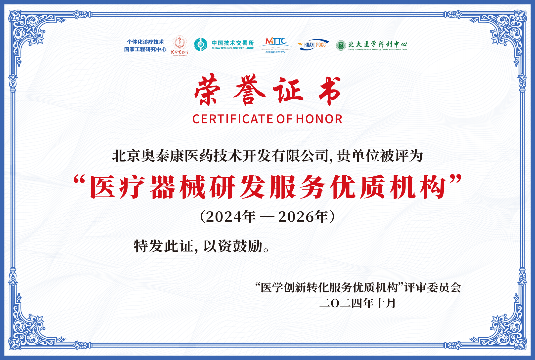 個(gè)體化醫(yī)學(xué)研討會(huì)暨第四屆衛(wèi)生健康創(chuàng)新與轉(zhuǎn)化管理論壇落幕 ——奧泰康獲評(píng)2024年度“醫(yī)療器械研發(fā)服務(wù)優(yōu)質(zhì)機(jī)構(gòu)”???
