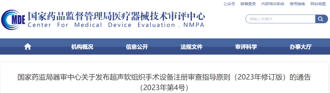 ●2023年3月31日,國(guó)家藥監(jiān)局器審中心修訂發(fā)布了《超聲軟組織手術(shù)設(shè)備注冊(cè)審查指導(dǎo)原則》(2023年修訂版)。(附件:超聲軟組織手術(shù)設(shè)備注冊(cè)審查指導(dǎo)原則(2023年修訂版)
