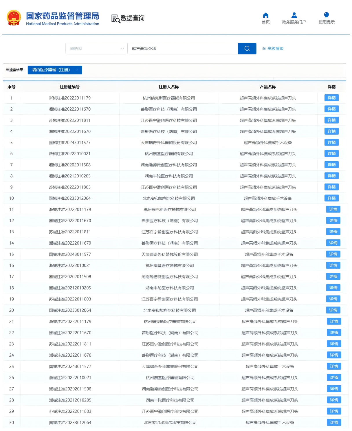 ● 2024年8月,賽諾微醫(yī)療科技自主研發(fā)的一次性使用超聲高頻外科集成手術(shù)設(shè)備超聲刀頭產(chǎn)品獲得NMPA批準(zhǔn)上市,系中國(guó)第一把獲批上市的國(guó)產(chǎn)7mm超聲刀。