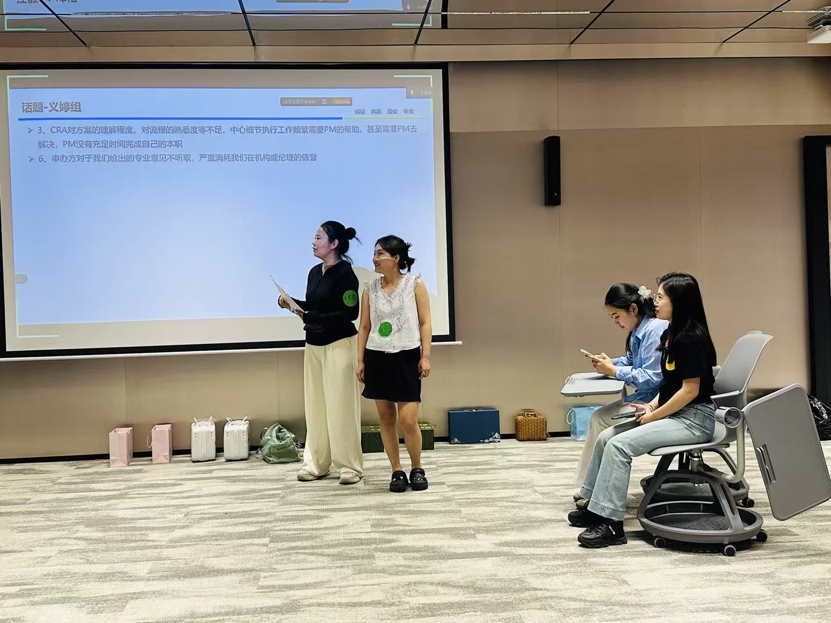 有效的溝通是團(tuán)隊(duì)協(xié)作的基石。本次培訓(xùn)引入了“非暴力溝通”理念,通過情景模擬與案例分析,幫助學(xué)員掌握傾聽、表達(dá)與反饋的技巧,減少人際沖突,提升團(tuán)隊(duì)凝聚力。通過不同情節(jié)的生動(dòng)演繹,團(tuán)隊(duì)成員詮釋出日常工作中的各種棘手問矛盾,許多學(xué)員表示,這一環(huán)節(jié)讓他們重新審視了溝通方式,學(xué)會(huì)了如何以更平和、高效的方式解決工作中的矛盾。這不僅是一種技巧,更是一種修行,它能幫助我們化解與研究者、受試者或團(tuán)隊(duì)成員間的潛在沖突,營造和諧、高效的工作氛圍。