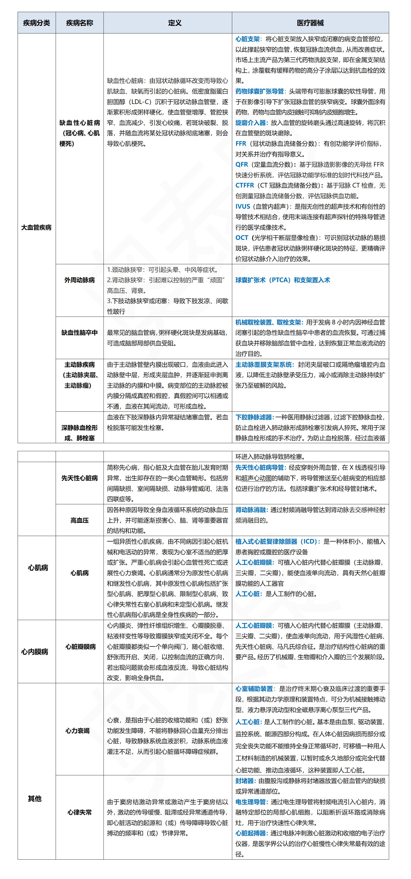 心血管疾病類(lèi)別及對(duì)應(yīng)用醫(yī)療器械