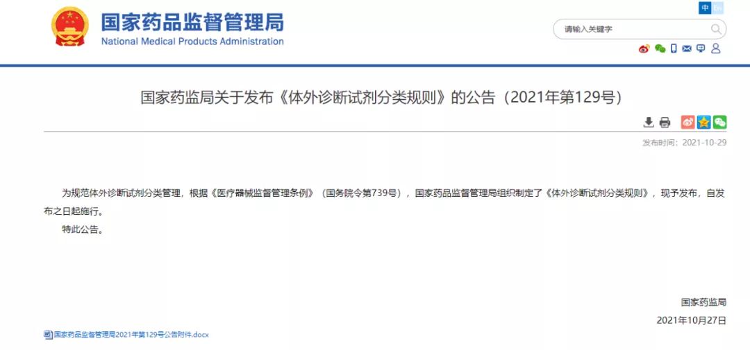 國(guó)家藥監(jiān)局發(fā)布《體外診斷試劑分類(lèi)規(guī)則》公告及解讀