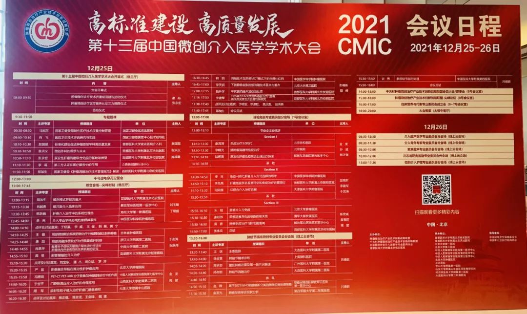 2021年12月25日,由國(guó)家腫瘤微創(chuàng)聯(lián)盟等單位主辦的第十三屆中國(guó)微創(chuàng)介入醫(yī)學(xué)學(xué)術(shù)大會(huì)(2021CMIC)于北京隆重召開。