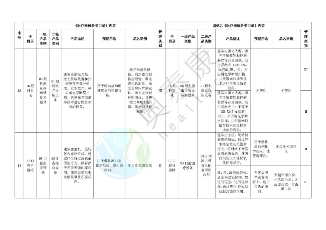 附件:《醫(yī)療器械分類目錄》部分內(nèi)容調(diào)整表
