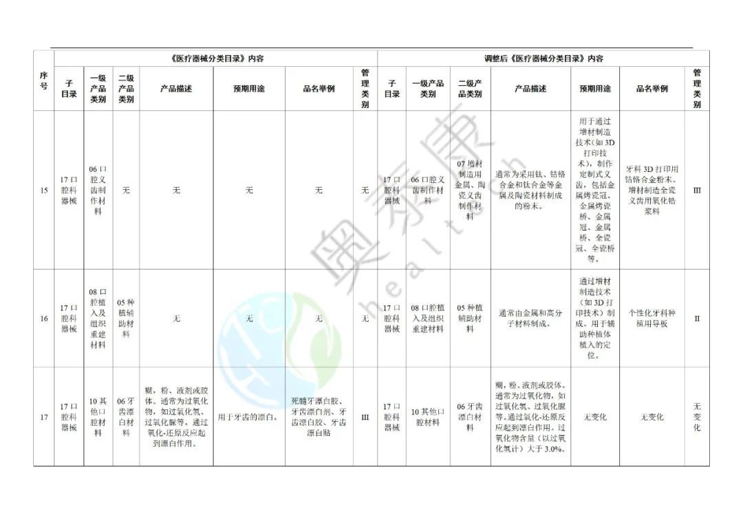 對(duì)27類醫(yī)療器械涉及《醫(yī)療器械分類目錄》內(nèi)容進(jìn)行調(diào)整,具體調(diào)整內(nèi)容見附件。
