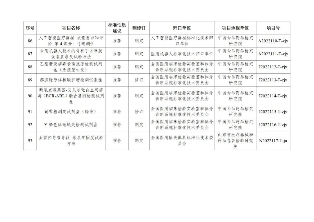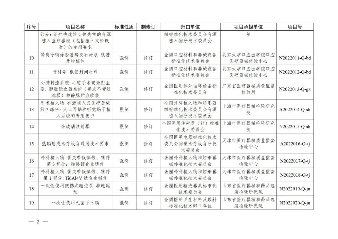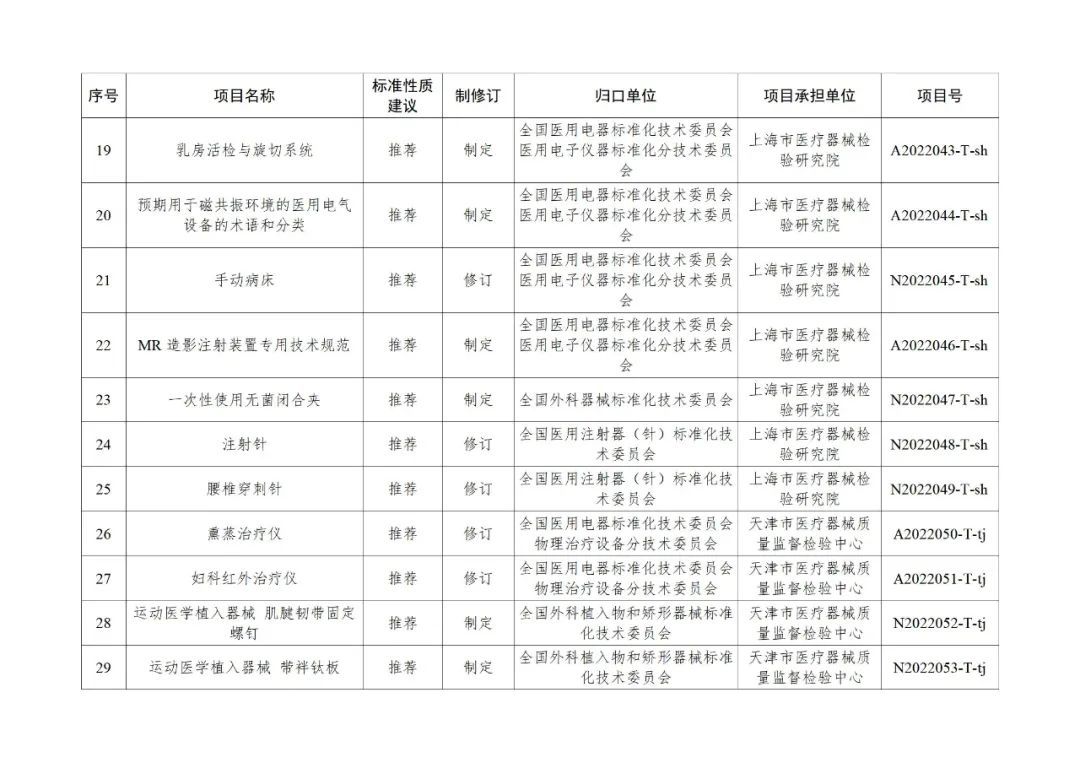 國(guó)家藥監(jiān)局綜合司關(guān)于印發(fā)2022年醫(yī)療器械行業(yè)標(biāo)準(zhǔn)制修訂計(jì)劃項(xiàng)目的通知