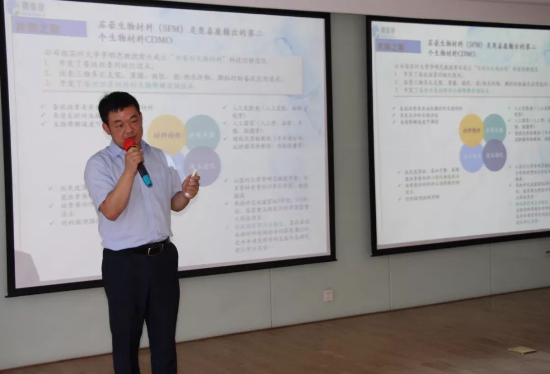 培訓(xùn)會(huì)在下午1:30準(zhǔn)時(shí)開(kāi)始,集團(tuán)CEO饒總對(duì)公司整體發(fā)展做詳細(xì)講解,饒總分別從“企業(yè)發(fā)展歷程”、“管理團(tuán)隊(duì)介紹”、“我們的未來(lái)發(fā)展”三大方面進(jìn)行介紹,培訓(xùn)中,饒總憶苦思甜,深情講述奧泰康發(fā)展初期的鳳凰涅槃,在場(chǎng)員工無(wú)一不為之動(dòng)容,為公司初期艱苦奮斗,堅(jiān)守信念的精神所感動(dòng);之后奧泰康進(jìn)入快速發(fā)展階段,先后獲得多項(xiàng)創(chuàng)新醫(yī)療器械批件,并參與多項(xiàng)國(guó)家重點(diǎn)研究項(xiàng)目,并與多家國(guó)內(nèi)外知名企業(yè)合作,擁有醫(yī)療器械CDMO行業(yè)唯一的已投產(chǎn)GMP車(chē)間等等,從最初單項(xiàng)的CRO項(xiàng)目服務(wù)延伸到CRO/CDMO一體化服務(wù),致力于成為醫(yī)藥行業(yè)MA解決方案的領(lǐng)導(dǎo)者;
