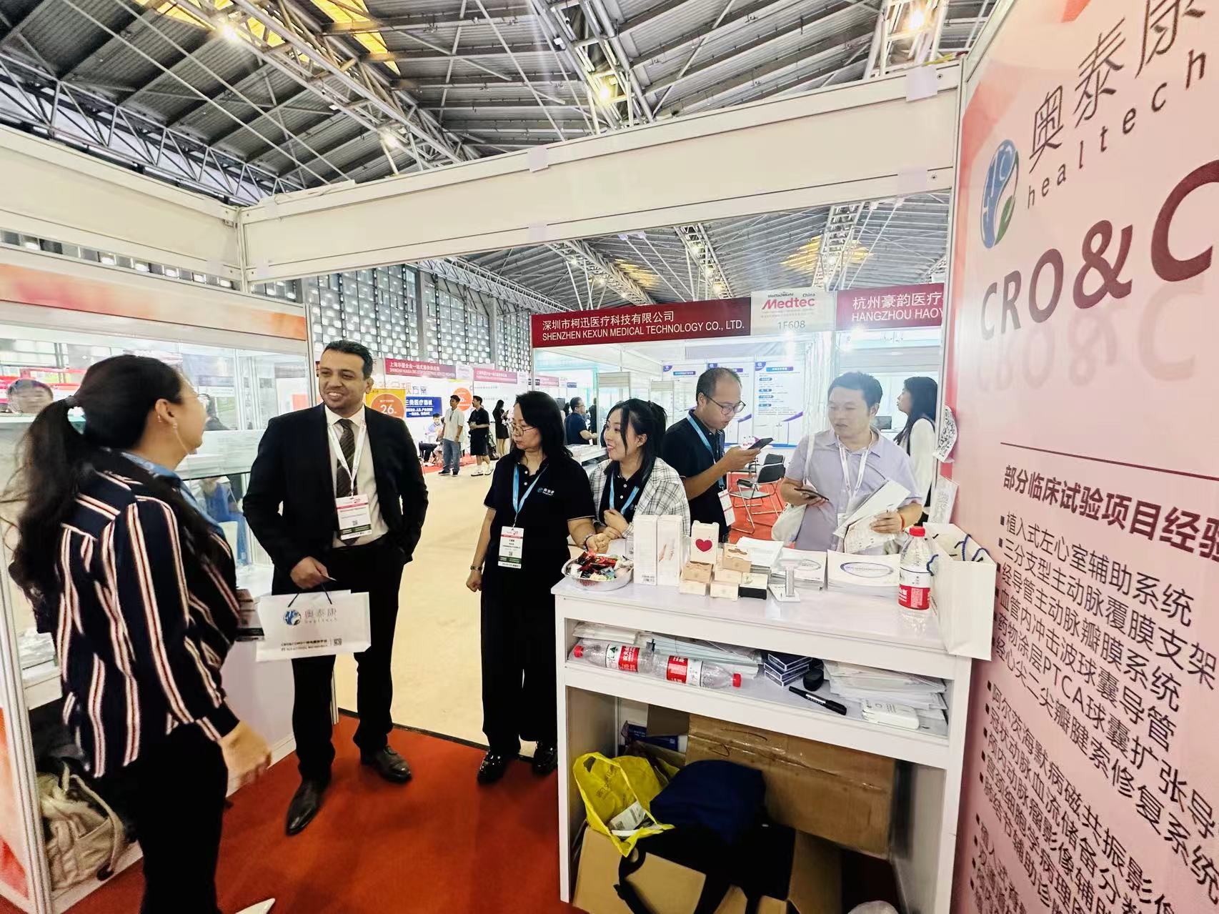 奧泰康作為創(chuàng)新及高端醫(yī)療器械優(yōu)質(zhì)服務商亮相展會,展位前人流絡繹不絕,奧泰康憑借18年豐富臨床項目經(jīng)驗吸引了國內(nèi)外諸多參展嘉賓及醫(yī)療同仁駐足交流,圍繞公司數(shù)百項成功案例經(jīng)驗展開介紹,展位人員為每位來訪者耐心講解服務內(nèi)容,認真傾聽客戶需求,根據(jù)產(chǎn)品本身提供適合的市場準入全流程解決方案,在展會現(xiàn)場,集團CRO&CDMO一體化服務平臺獲得客戶及業(yè)界同仁的廣泛關注。