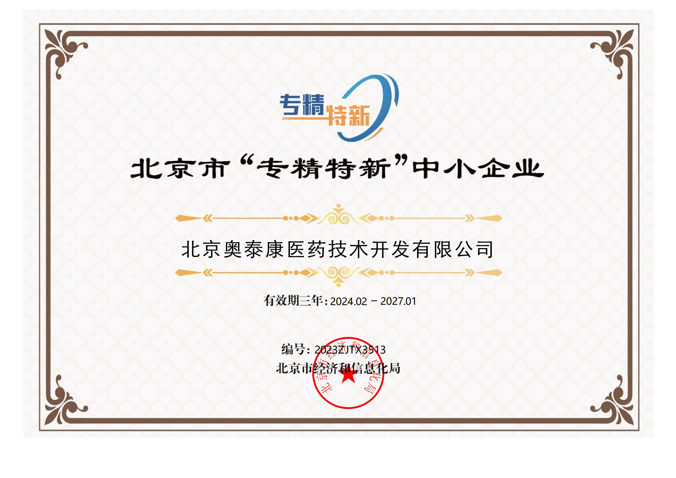 02、奧泰康通過北京市“專精特新”中小企業(yè)認(rèn)定