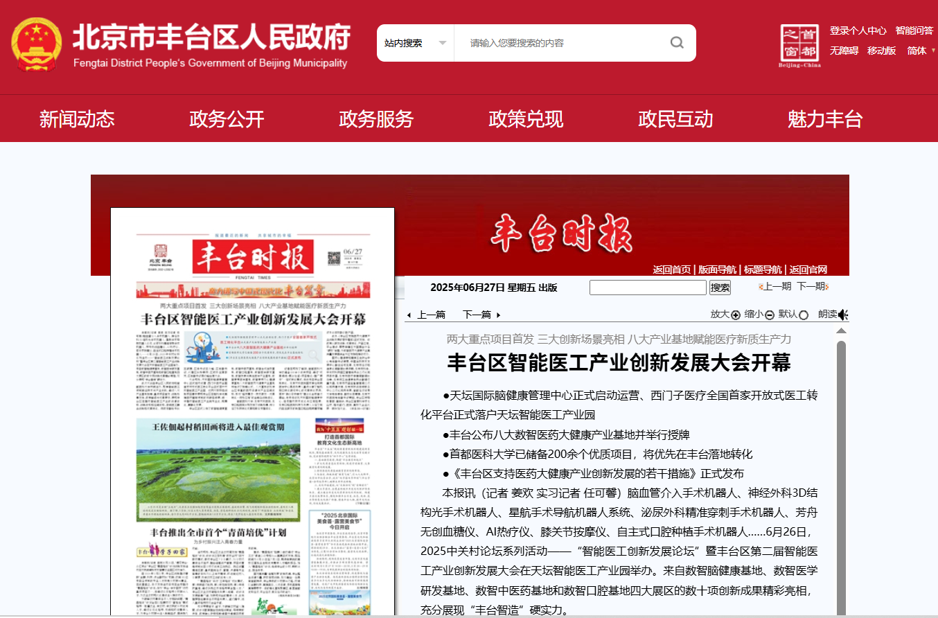 6月26日,由豐臺(tái)區(qū)人民政府、首都醫(yī)科大學(xué)舉辦的中關(guān)村論壇系列活動(dòng)“智能醫(yī)工創(chuàng)新發(fā)展論壇”暨豐臺(tái)區(qū)第二屆智能醫(yī)工產(chǎn)業(yè)創(chuàng)新發(fā)展大會(huì)在北京順利舉辦,此次大會(huì)聚焦智能醫(yī)工領(lǐng)域前沿技術(shù)與產(chǎn)業(yè)實(shí)踐,通過八大產(chǎn)業(yè)基地授牌、重點(diǎn)項(xiàng)目首發(fā)、創(chuàng)新場景發(fā)布、政策解讀與成果展示,展現(xiàn)豐臺(tái)區(qū)在推動(dòng)智能醫(yī)工產(chǎn)業(yè)的資源優(yōu)勢、創(chuàng)新優(yōu)勢和空間優(yōu)勢,促進(jìn)醫(yī)工融合創(chuàng)新和成果轉(zhuǎn)化。北京市政府副秘書長王穎捷,區(qū)委書記王少峰,區(qū)委副書記、代理區(qū)長張艷林,區(qū)政協(xié)主席李嵐,區(qū)委副書記蔣達(dá)峰,首席科學(xué)家毛山宏等領(lǐng)導(dǎo)出席會(huì)議。