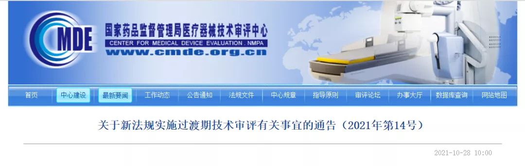 CMDE《關(guān)于新法規(guī)實施過渡期技術(shù)審評有關(guān)事宜的通告(2021年第14號)》